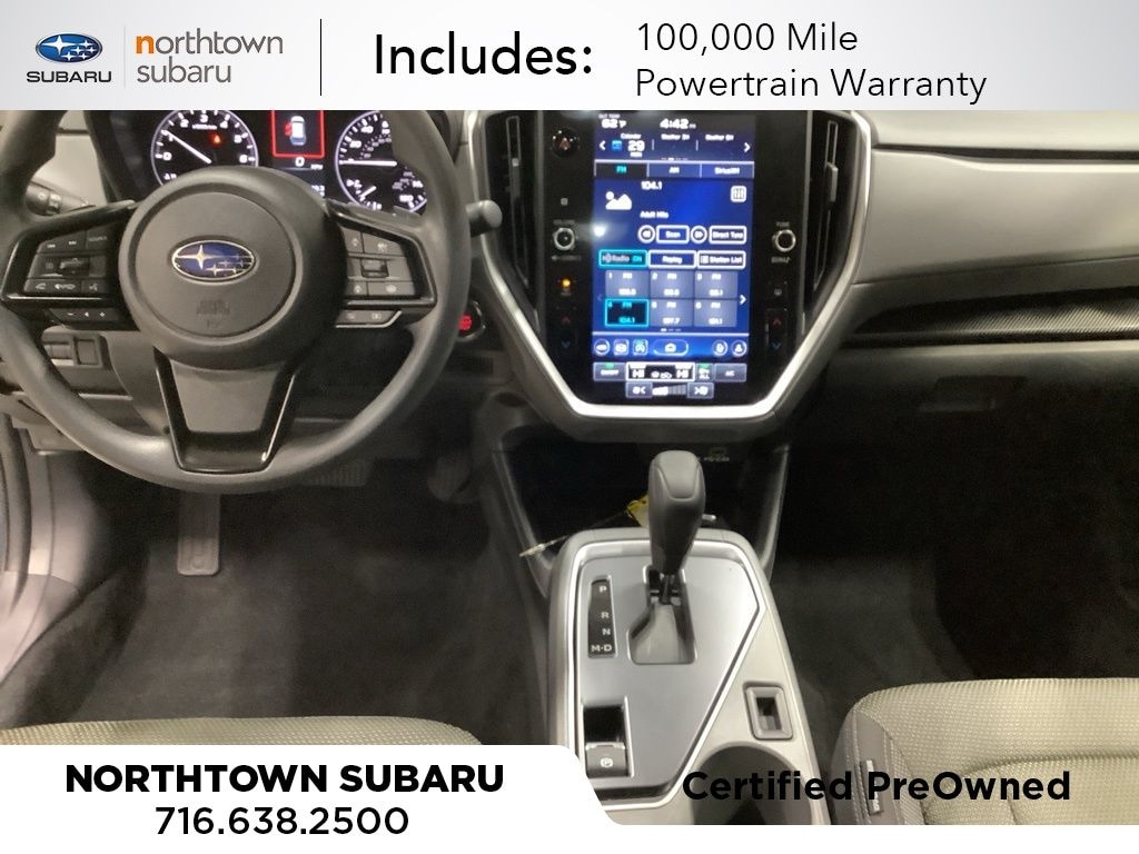 See the rest of our inventory at: NORTHTOWNSUBARU.COM Standard Model, Subaru Certified Pre-Owned Certified, 3.90 Axle Ratio, 4-Wheel Disc Brakes, 6 Speakers, ABS brakes, Air Conditioning, Alloy wheels, AM/FM radio: SiriusXM, Anti-whiplash front head restraints, Auto High-beam Headlights, Automatic temperature control, Brake assist, Bumpers: body-color, Driver door bin, Driver vanity mirror, Dual front impact airbags, Dual front side impact airbags, Electronic Stability Control, Emergency communication system: STARLINK Safety and Security (Subscription Required), Exterior Parking Camera Rear, Four wheel independent suspension, Front anti-roll bar, Front Bucket Seats, Front Center Armrest, Front dual zone A/C, Front fog lights, Front reading lights, Fully automatic headlights, Illuminated entry, Knee airbag, Low tire pressure warning, Occupant sensing airbag, Outside temperature display, Overhead airbag, Overhead console, Panic alarm, Passenger door bin, Passenger vanity mirror, Power door mirrors, Power steering, Power windows, Premium Cloth Upholstery, Radio data system, Radio: Subaru STARLINK 11.6" Multimedia Plus Sys, Rear anti-roll bar, Rear seat center armrest, Rear window defroster, Rear window wiper, Remote keyless entry, Security system, Speed control, Speed-sensing steering, Split folding rear seat, Spoiler, STARLINK/Apple CarPlay/Android Auto, Steering wheel mounted audio controls, Tachometer, Telescoping steering wheel, Tilt steering wheel, Traction control, Trip computer, Turn signal indicator mirrors, Variably intermittent wipers, and Wheels: 17" x 7.0J Dark Gray Aluminum Alloy.
