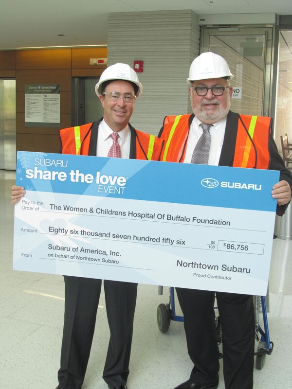 These dollars have been donated to the new Oishei Children's Hospital and were presented this past Thursday afternoon at a ceremony on the Buffalo Niagara Medical Campus. Â The new facility will be fully operational this coming fall and our commitment since 2013 has been recognized with multiple patient rooms dedicated to the efforts of the Northtown Subaru team.