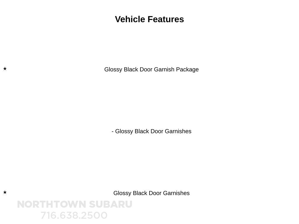 See the rest of our inventory at: NORTHTOWNSUBARU.COM Glossy Black Door Garnish Package (Glossy Black Door Garnishes), 4-Wheel Disc Brakes, 6 Speakers, 6.052 Axle Ratio, ABS brakes, Air Conditioning, Alloy wheels, AM/FM radio, Apple CarPlay & Android Auto, Brake assist, Bumpers: body-color, Carpeted Floor Mats, Combination Sofino & Cloth Seat Trim, Delay-off headlights, Driver door bin, Driver vanity mirror, Dual front impact airbags, Dual front side impact airbags, Electronic Stability Control, Exterior Parking Camera Rear, Front anti-roll bar, Front Bucket Seats, Front Center Armrest, Front fog lights, Front reading lights, Front wheel independent suspension, Fully automatic headlights, Heated door mirrors, Illuminated entry, Leather Shift Knob, Low tire pressure warning, Occupant sensing airbag, Outside temperature display, Overhead airbag, Overhead console, Panic alarm, Passenger door bin, Passenger vanity mirror, Power door mirrors, Power steering, Power windows, Radio: AM/FM/MP3 Display Audio, Rear seat center armrest, Rear window defroster, Rear window wiper, Remote keyless entry, Security system, Speed control, Speed-sensing steering, Split folding rear seat, Spoiler, Steering wheel mounted audio controls, Tachometer, Telescoping steering wheel, Tilt steering wheel, Traction control, Trip computer, Turn signal indicator mirrors, Variably intermittent wipers, and Wheels: 17" Alloy w/Dark Gray Finish.