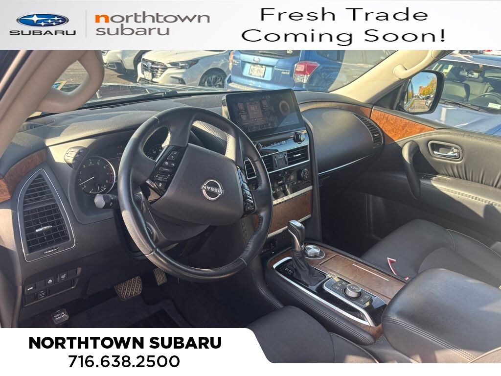 See the rest of our inventory at: NORTHTOWNSUBARU.COM 4WD, 13 Speakers, 2.94 Axle Ratio, 3rd row seats: split-bench, 4-Wheel Disc Brakes, ABS brakes, Air Conditioning, Alloy wheels, AM/FM radio: SiriusXM, Anti-whiplash front head restraints, Auto High-beam Headlights, Auto tilt-away steering wheel, Auto-dimming door mirrors, Auto-dimming Rear-View mirror, Auto-leveling suspension, Automatic temperature control, Bose 13-Speaker Premium Audio System, Brake assist, Bumpers: body-color, Delay-off headlights, Driver door bin, Driver vanity mirror, Dual front impact airbags, Dual front side impact airbags, Electronic Stability Control, Emergency communication system: NissanConnect Services, Exterior Parking Camera Rear, Four wheel independent suspension, Front anti-roll bar, Front Bucket Seats, Front Center Armrest, Front dual zone A/C, Front fog lights, Front reading lights, Fully automatic headlights, Garage door transmitter: HomeLink, Heated door mirrors, Heated Front Bucket Seats, Heated front seats, Heated steering wheel, Illuminated entry, Knee airbag, Leather Shift Knob, Leather-Appointed Seat Trim, Low tire pressure warning, Memory seat, Navigation System, NissanConnect featuring Apple CarPlay and Android Auto, Occupant sensing airbag, Outside temperature display, Overhead airbag, Overhead console, Panic alarm, Passenger door bin, Passenger vanity mirror, Power door mirrors, Power driver seat, Power Liftgate, Power moonroof, Power passenger seat, Power steering, Power windows, Premium audio system: Bose, Radio: NissanConnect w/SiriusXM, Rear air conditioning, Rear anti-roll bar, Rear reading lights, Rear seat center armrest, Rear window defroster, Rear window wiper, Reclining 3rd row seat, Remote keyless entry, Security system, Speed control, Speed-sensing steering, Speed-Sensitive Wipers, Split folding rear seat, Spoiler, Steering wheel memory, Steering wheel mounted audio controls, Tachometer, Telescoping steering wheel, Tilt steering wheel, Traction control, Trip computer, Turn signal indicator mirrors, Variably intermittent wipers, Voltmeter, and Wheels: 20" x 8J Painted Alloy.